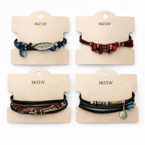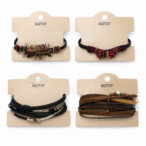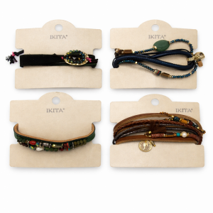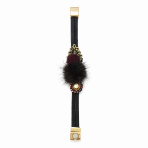 Bracelet Ikita noir élégant à lanière avec pompon et strass