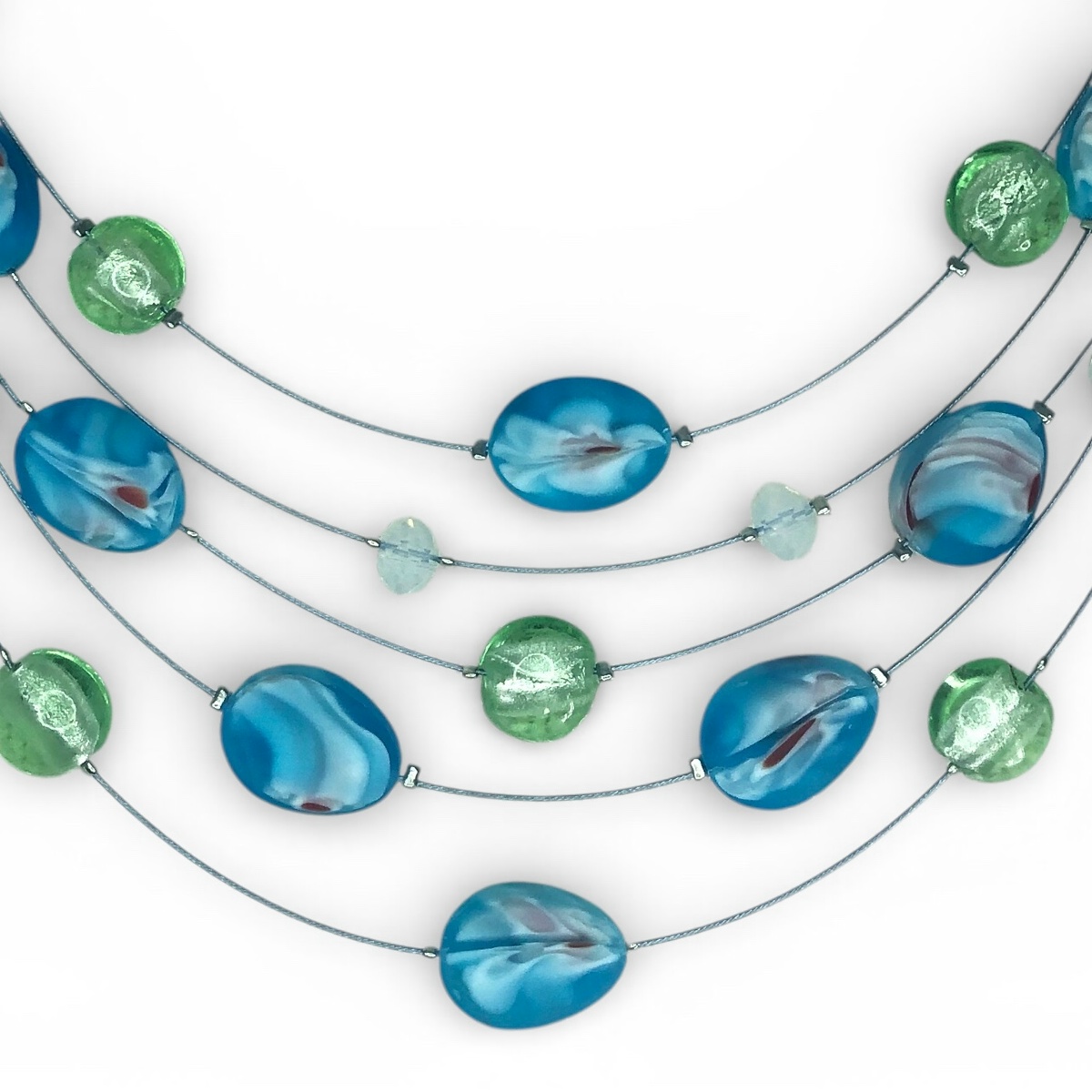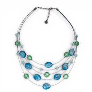 Collier de perles Ikita, couleurs vert/bleu/blanc, 4 rangs, longueur ajustable de 43 ? 48cm.