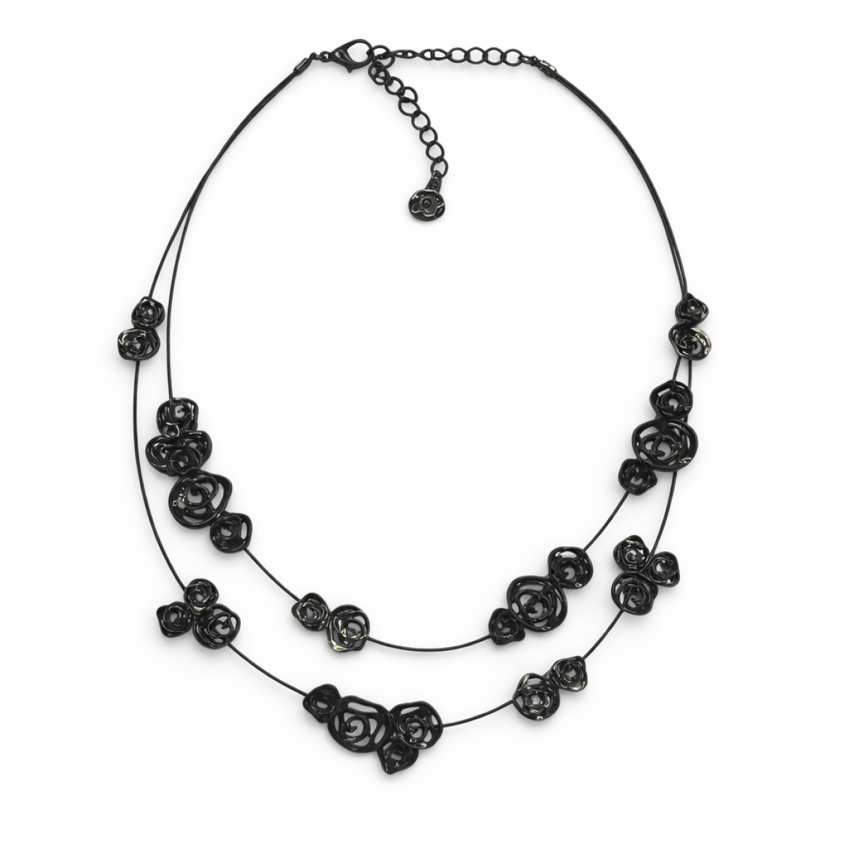 Collier Ikita 2 rangs, coloris noir brillant, longueur ajustable de 40 ? 48cm
