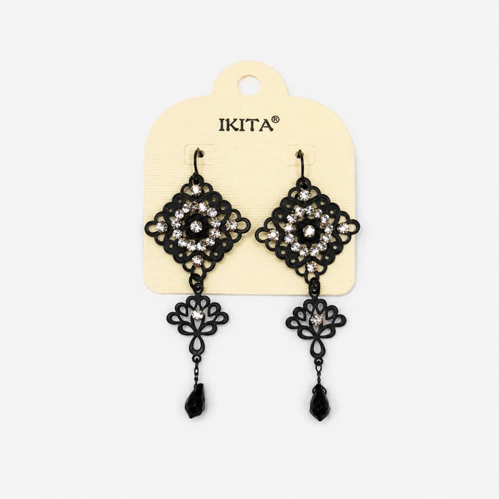 Boucles dâoreilles pendantes IKITA noir & strass
