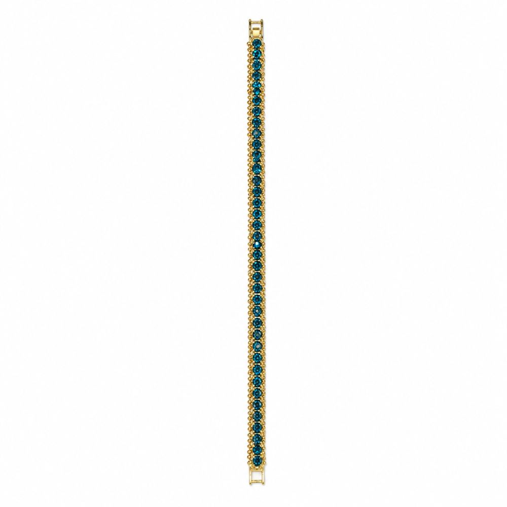 Délicat et lumineux, ce bracelet IKITA séduit par sa finesse et son élégance intemporelle. Sa ligne épurée met en valeur une succession de strass bleus aux reflets éclatants, subtilement enchùssés dans une structure dorée qui capte la lumiÚre à chaque mouvement.