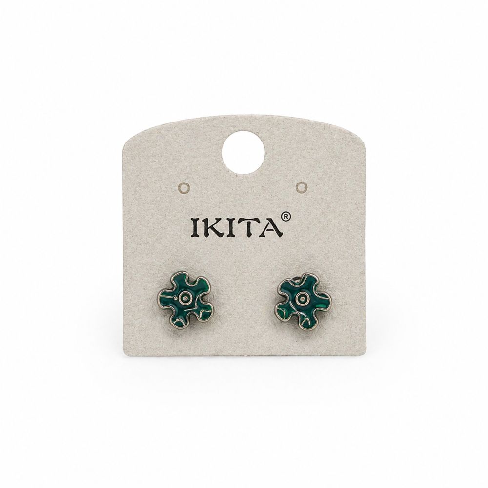 Boucles dâoreilles puces fleur IKITA vert Ă©maillĂ©