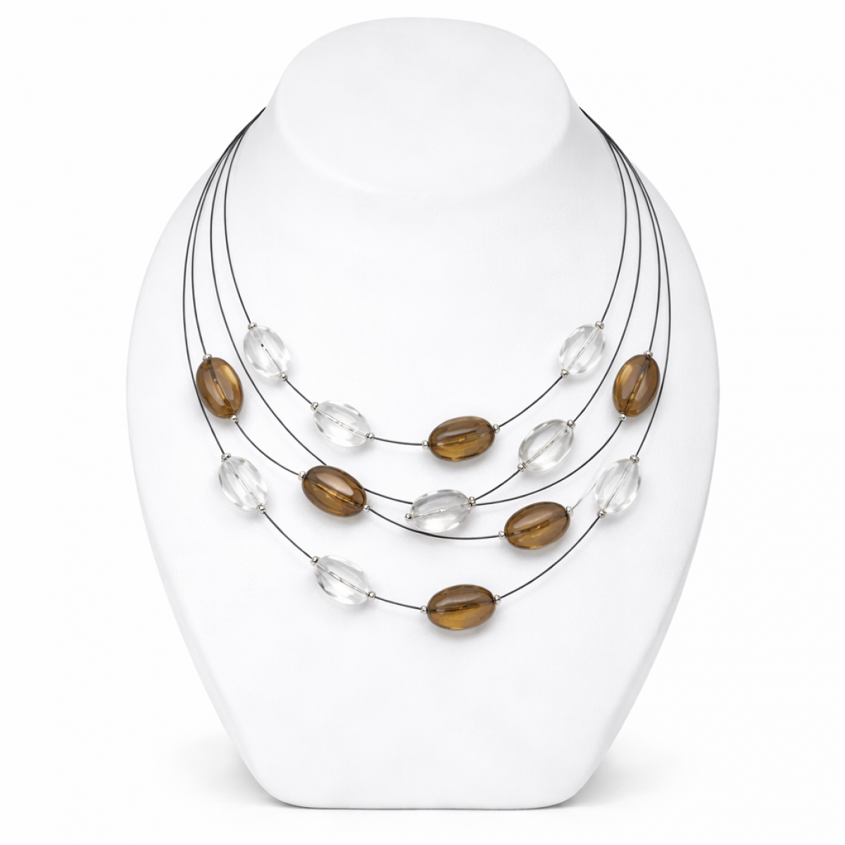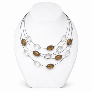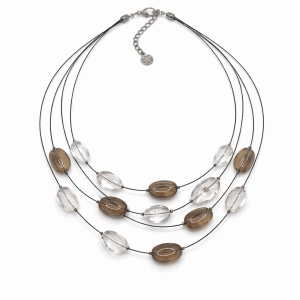 <h2>Collier Ikita 4 rangs perles transparentes & marron – Élégance légère et raffinée – 47 cm ajustable</h2>