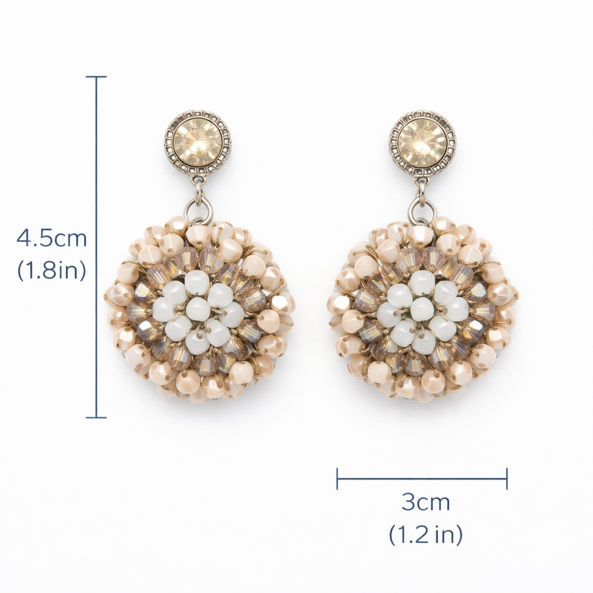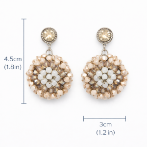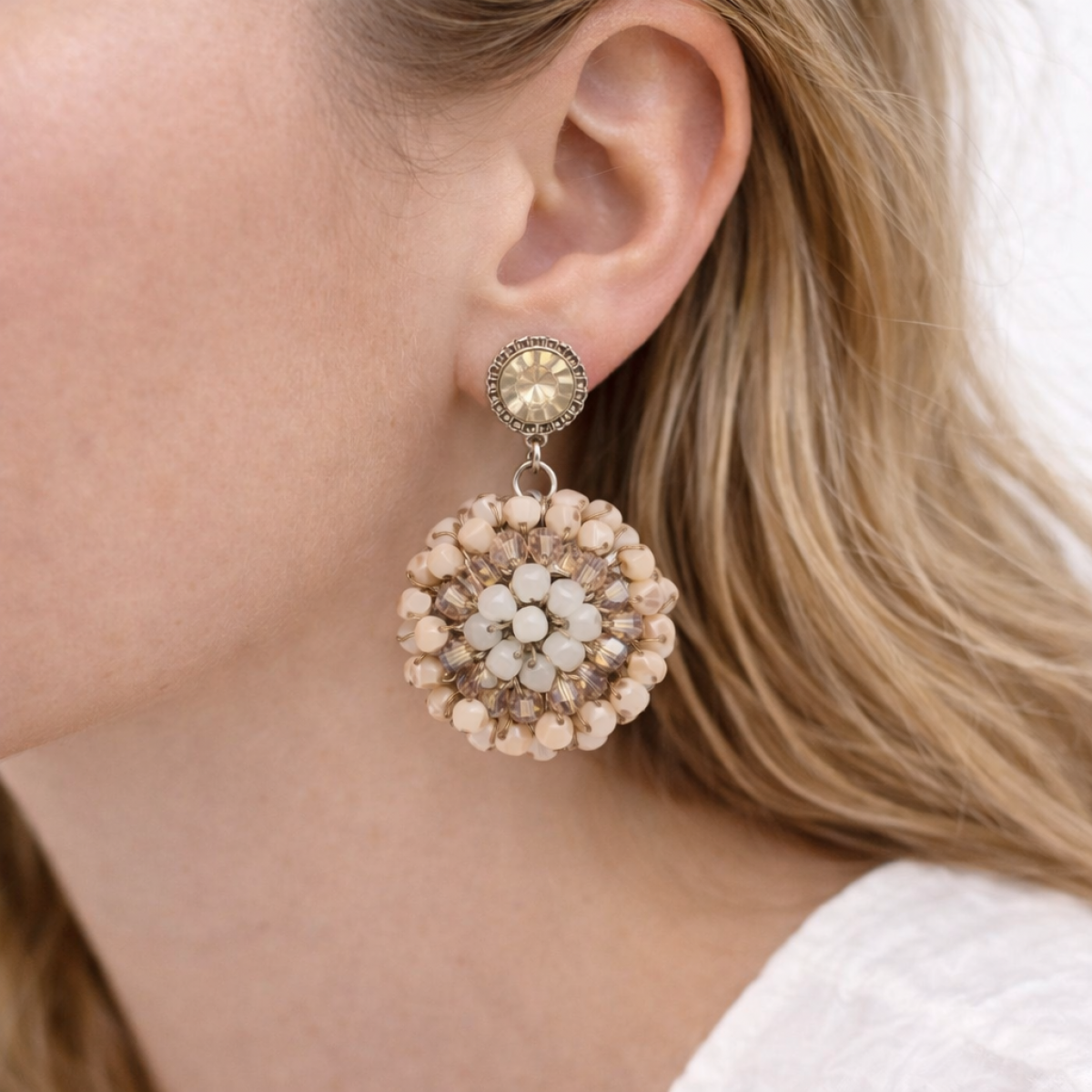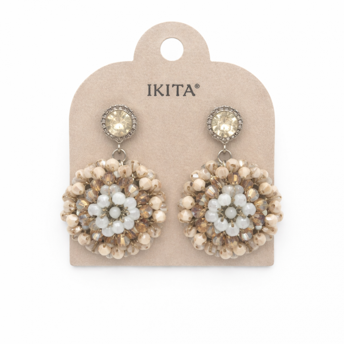 Apportez une touche d’élégance et de raffinement à votre style avec ces boucles d’oreilles Ikita aux finitions délicates. Leur design travaillé associe des perles nacrées et des cristaux facettés dans des tons doux et lumineux, pour un rendu chic et intemporel. Les nuances beige, ivoire et reflets brillants captent la lumière avec subtilité.