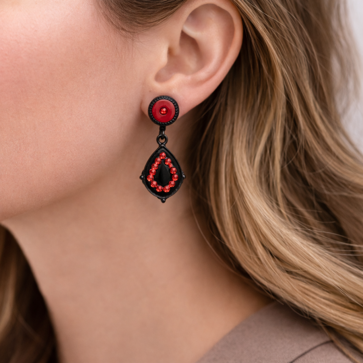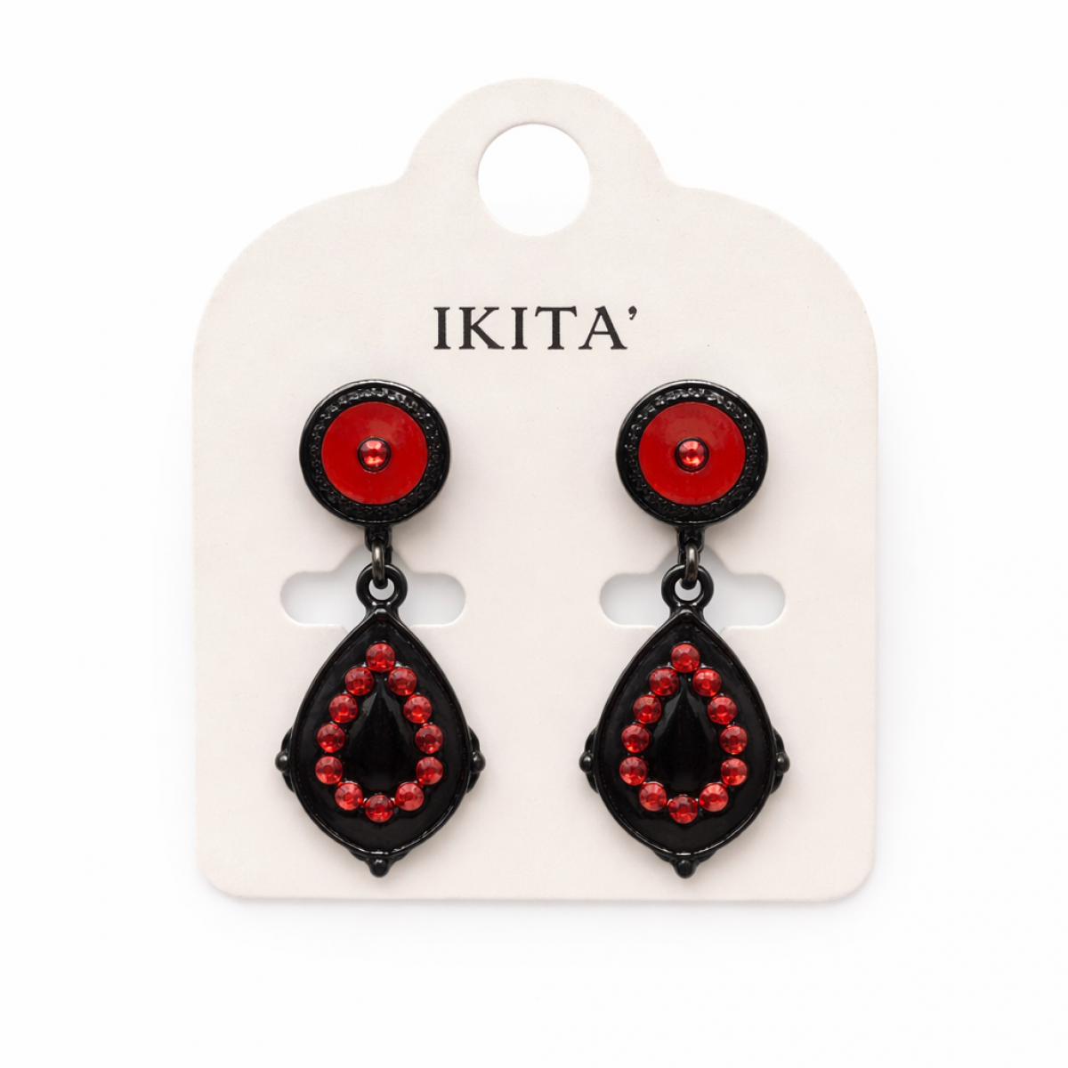 Apportez du caractère à votre style avec ces boucles d’oreilles Ikita au contraste intense noir et rouge. Leur design élégant associe une puce ronde à un élément pendante en forme de goutte, sublimé par de petits strass rouges lumineux. Un bijou à la fois chic et audacieux qui attire immédiatement le regard.