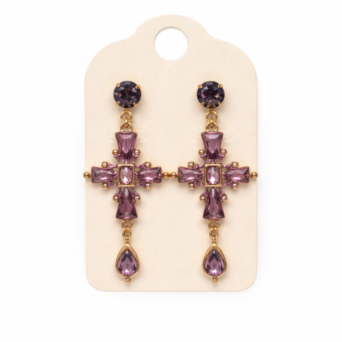 Boucles dâoreilles Ikita croix ornĂ©es rose violet pailletĂ©