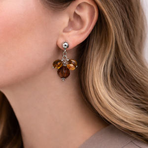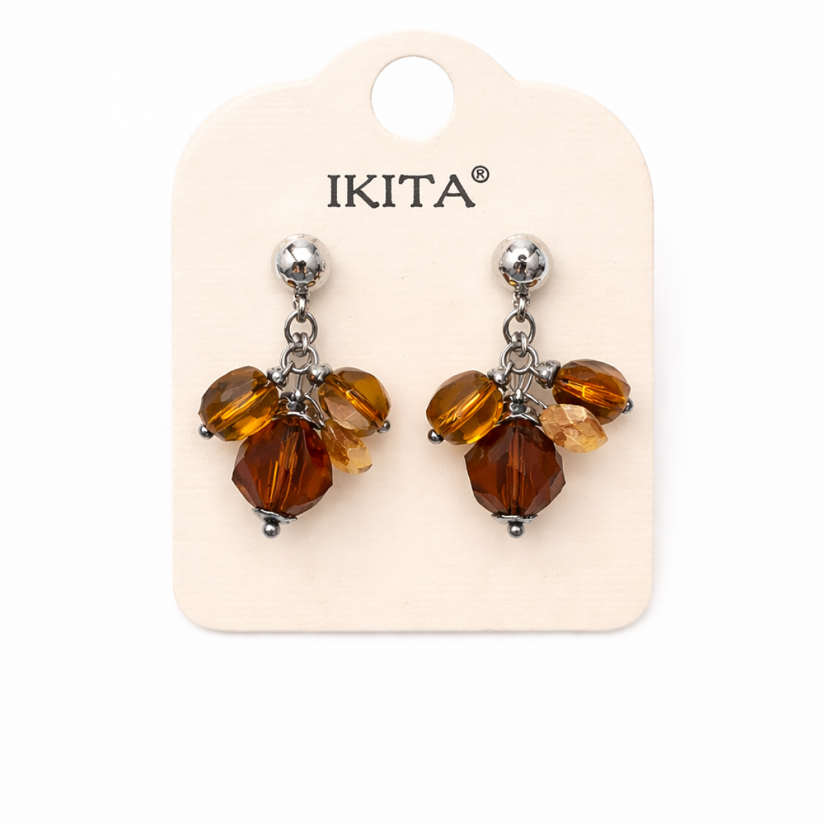 Apportez une touche chaleureuse et élégante à votre style avec ces boucles d’oreilles Ikita aux nuances ambrées. Composées de perles aux reflets translucides allant du miel au brun profond, elles captent délicatement la lumière pour un rendu raffiné et naturel.